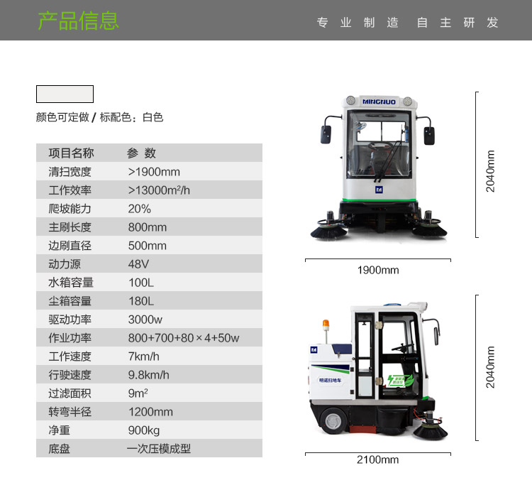 1清掃寬度mm≥1900