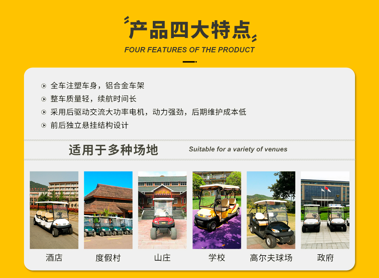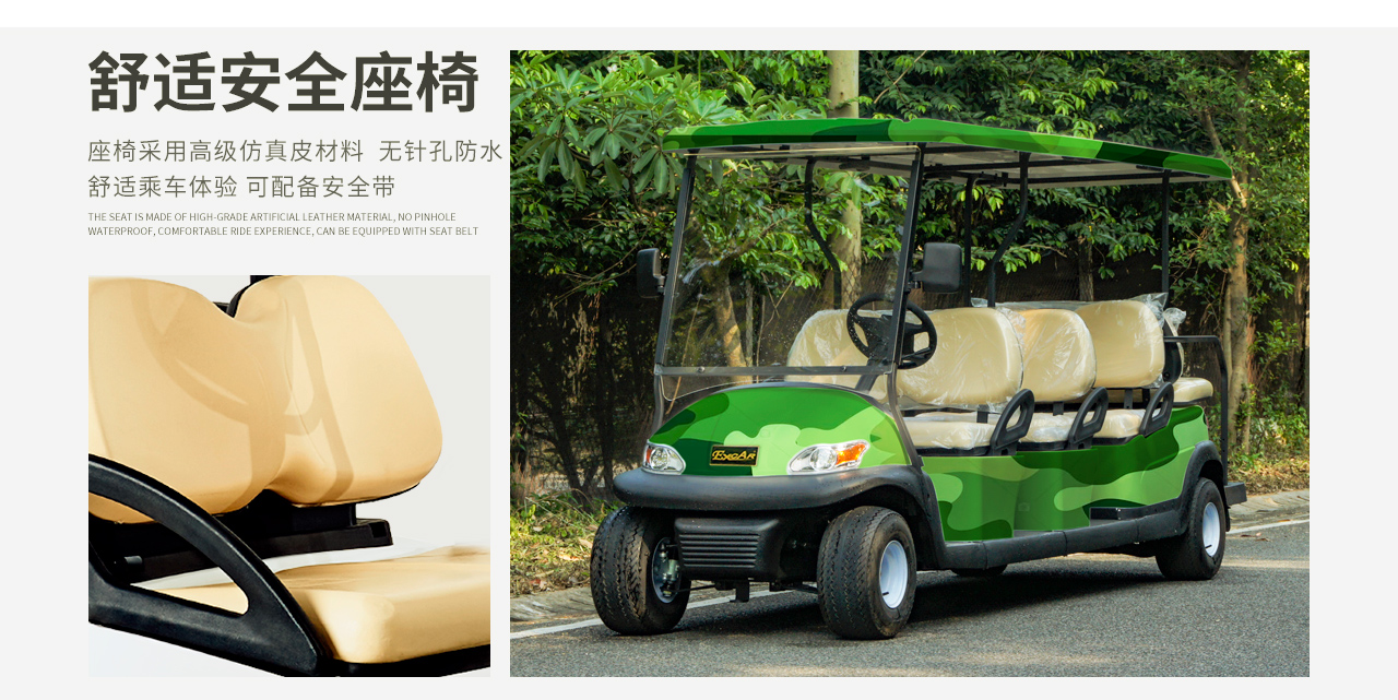 高爾夫球車,又稱電動高爾夫球車、汽動高爾夫球車,是專為高爾夫球場設計開發的環保型乘用車輛。也可在度假村、別墅區、花園式酒店、旅游景區等處使用。從高爾夫球場、別墅、酒店、學校到私人用戶,都將是短途交通工具。